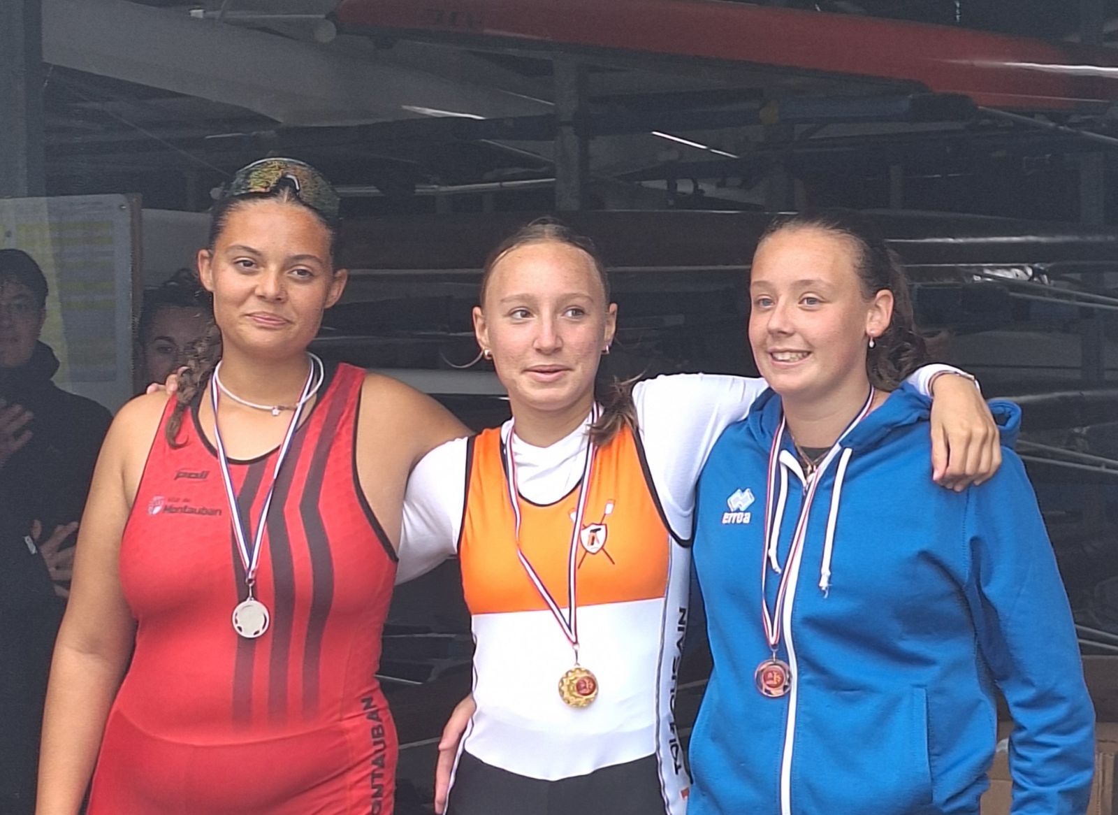 En skiff J16, Louise avec une belle seconde place de la finale B termine 7ème au classement général.