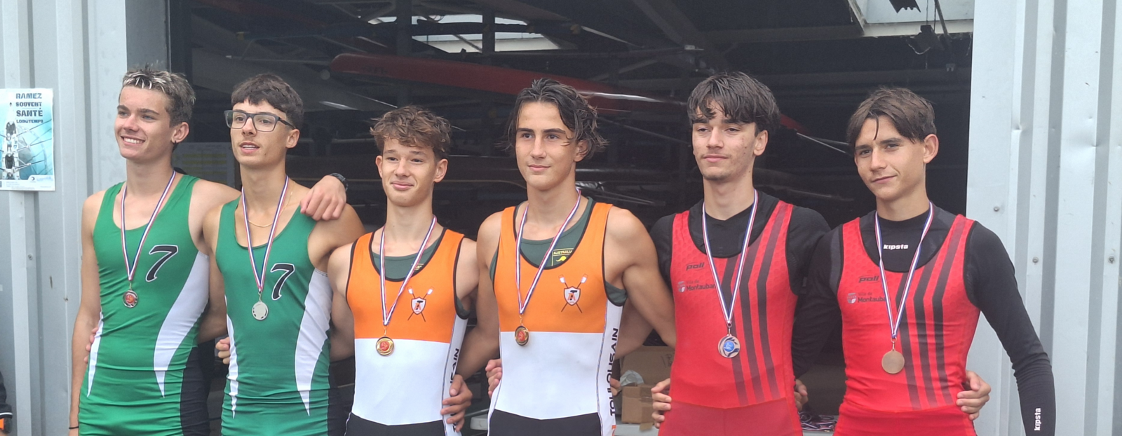 En J16H2-, Florian et Adrien 3ème de leur série améliorent leur temps en finale A et se placent sur la 3ème marche du podium.